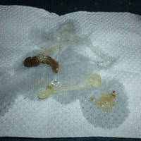 ¿Heces con cuerpos parecidos a lombrices anaranjados/rosados. Sera sangre?