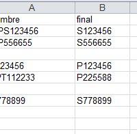 [Hola Te paso la macro Sub agrega_letra() '_Adriel Ortiz Application.ScreenUpdating = False ' u = Range("A" & Rows.Count).End(xlUp).Row suf = "S" ' For i = 2 To u cant = Len(Cells(i, 1)) If IsNumeric(Cells(i, 1)) And cant = 6 Then Cells(i, 1) = suf &...