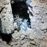 Hilo de metal sin aislar dentro de tubo corrugado llevado bajo el suelo