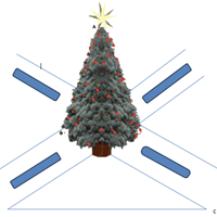 Se va a colocar un árbol de navidad en la esquina de dos calles como se muestra en la figura. Para asegurar el árbol, se piensa en dos cables iguales, tensados desde A hasta B y hasta C. Si el árbol se coloca verticalmente, describa al menos dos...