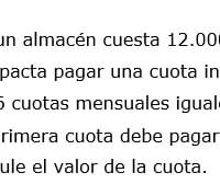 Una motobomba en un almacén cuesta 12.000.000 de contado. Se adquiere a crédito y se pacta pagar una cuota inicial del 30% del
