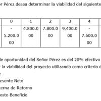 . El señor Pérez desea determinar la viabilidad del siguiente proyecto: