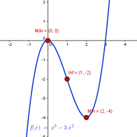 Entonces lo que faltaba eran los intervalos de crecimiento y decrecimiento. Sabes que sin usar la gráfica los puedes calcular por el signo de la derivada primera, la cual era: Y eso es todo, saludos. : :