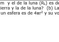El radio medio (RT) de la tierra es 6.37 x 106 m y el de la luna (RL) es de 1. 74 x108 cm. Con estos datos calcule.