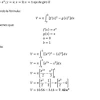 Pero no estoy seguro si está completo o me faltan datos, ¿Podrías además explicarme con se resuelve? Gracias de Antemano Calcula el sólido de revolución al girar la región limitada de las siguientes funciones dadas alrededor del eje especificado eje...