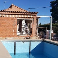 Estoy realizando reforma de unifamiliar. En la parte trasera voy a coger terraza, y se ha hecho una puerta de salida hacia la piscina. También se va a ampliar la parte derecha que se ve en la foto, donde están los pilares y vigas. Ahí he programado...