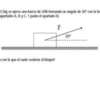 Sobre un bloque de 0,5 kg se ejerce una fuerza de 50N formando un angulo de 30 grados con la horizontal.