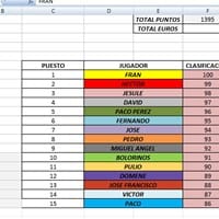 La columna clasificación se ordena de mayor a menor y quiero que los nombres vayan asociados a las celdas de clasificación que en este ejemplo están ordenadas . Ejemplo que si el valor de fran varia al ordenarse con nuevos valores se vaya el nombre...