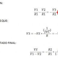 En la ecuación se substituye V3 que sabemos lo que es. Una vez sustituido hay que aislar VS/(V1-V2), pero matemáticamente no se como se llega al resultado final que se que esta correcto, pero no se sacarlo. Agradecería que me dijerais paso a paso y...
