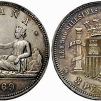 ¿ Cuánto vale una moneda de 5 pesetas de plata ley 900 milésimas de 1969 SN. M.?