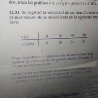 Ejercisio 12.33 trace la grafica v-t, aproximando a una curva como segmentos de recta entre los puntos dados. Calcule la distancia total recorrida