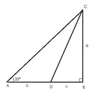 Sea ABC un triángulo rectángulo siendo: D un punto del lado (AB), (AD)=c, ∢CAB=30° y (BC)=a.