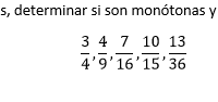 Desarrollo siguientes sucesiones, Determinar si son monótonas y si convergen o divergen