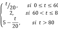 Un objeto en el origen en el instante t=0 tiene velocidad, medida en metros por segundo,