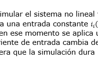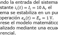 Cuando la entrada del sistema es constante i_i (t)=I_i=10 A, el sistema se estabiliza en un punto de operación e_o (t)=E_o=1 V.